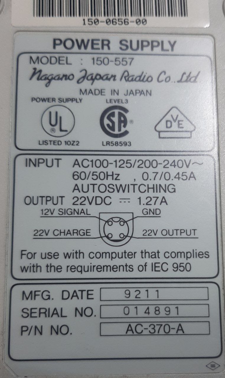 Zenith Data Systems 150-557 AC Adaptor 22VDC 1.27A