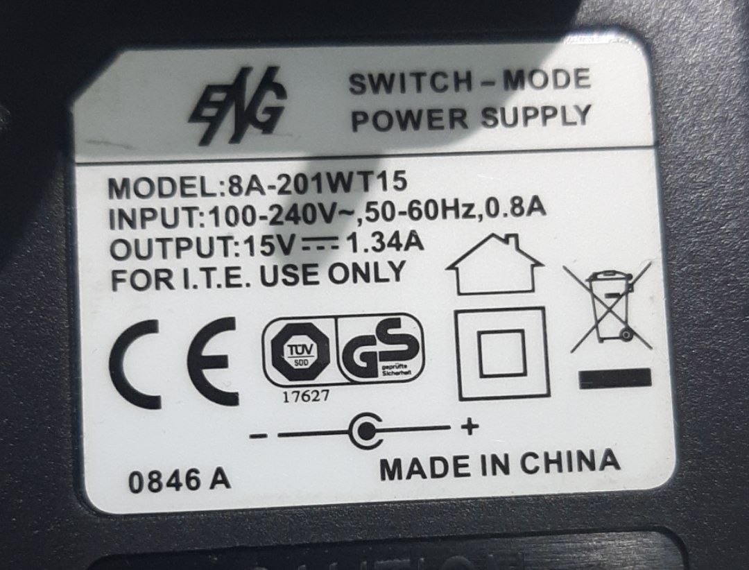 Adaptador corriente AC/DC 15V/1,34A