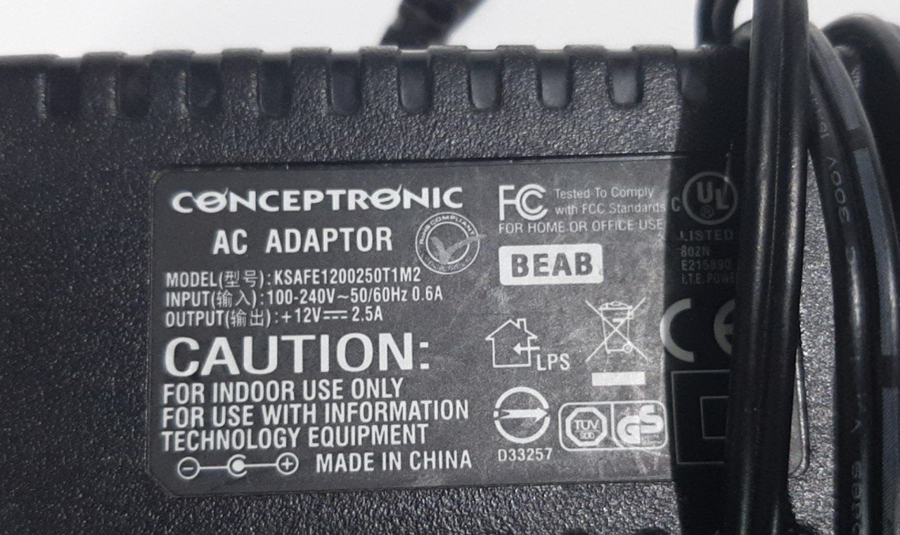 Adaptador corriente AC/DC Conceptronic. Ref: KSAFE1200250T1M2.