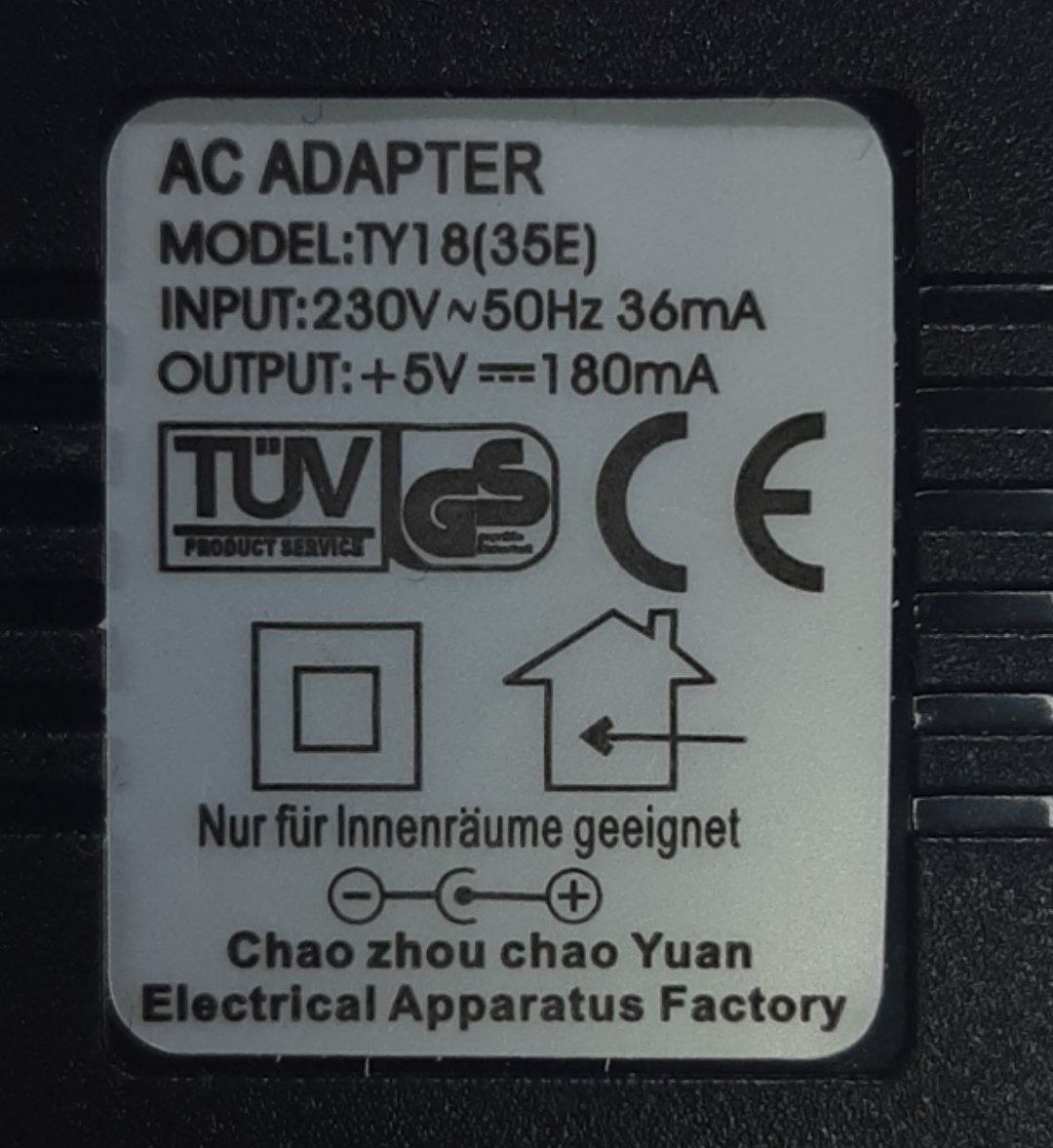 Adaptador corriente AC/DC 5V/180mA