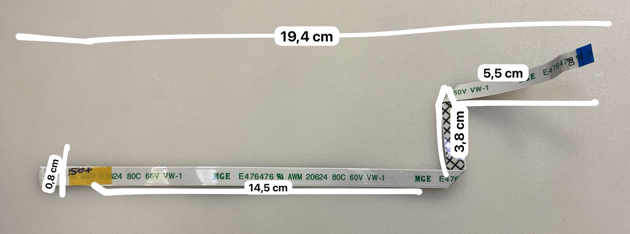 CABLE FLEX MGE E476476 AWM 20624 80C 60V VW-1 | 12 Pines | MEDIDAS: 3,8-19,4 cm de largo (ver imágenes)/ 0,8 cm de ancho | REACONDICIONADO