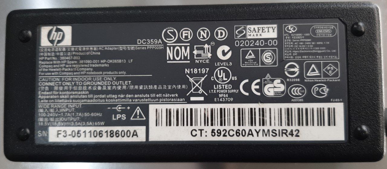 Salida (Output): 18.5 V DC ⎓ 3.5 A