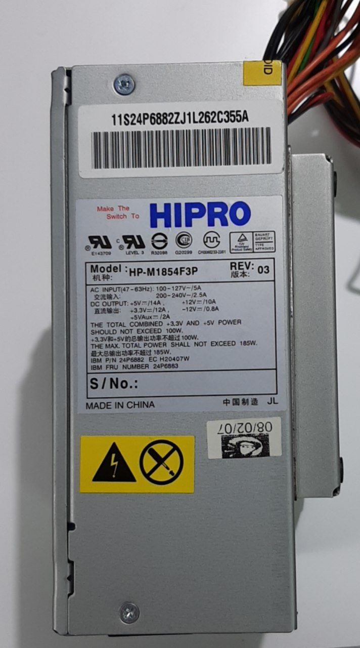 Fuente PC HIPRO HP-M1854F3P Universal 20+4-Pin IBM 24P6882 24P6883 185W