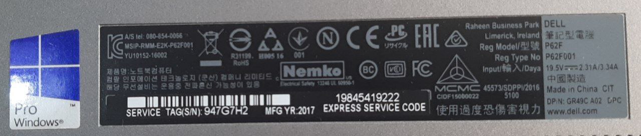 Compatibilidad: Dell Vostro 14 5468 / 15 5568 (2016–2018) 19.5 V ⎓ 2.31 A (para modelos P62F)